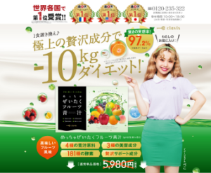 | めっちゃぜいたくフルーツ青汁はぺこちゃんがダイエットをしていた時に飲んでいたということでとても有名になった青汁です。 実際の効果や成分に関してはというと、4種類の青汁原料、181種類の酵素、3種の美容成分、贅沢サポート成分がひとつに配合された健康、美肌、ダイエットドリンクとなっています。 注目すべきは青汁という苦い飲み物のイメージを一変してフルーツジュース味にしているところが様々な人が購入している理由のようです。 そして高いダイエット効果をもたらすと有名な置き換えダイエットとして代用することでダイエット効果がバツグンとなっています。 飲んでいるだけでも健康や美肌に効果があるため様々な年齢層の人に愛用されています。 |