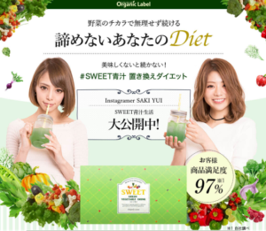 | スイーツ青汁の特徴としては91種の酵素、8種の高品質美容成分、3種の乳酸菌、5種のダイエットサポート成分が配合されています。 青汁特有の苦みや青臭さがなくフルーティな味わいで人気になっています。 また置き換えダイエットとしても優秀で腹持ちがよくなるスーパーフードを使用しているので置き換えダイエットで失敗する可能性が極めて低いと言われています。 |