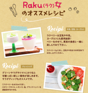 ラクベリーはお水で混ぜて飲むだけではなく、牛乳や豆乳、またはドレッシングとして使うことも出来ます。